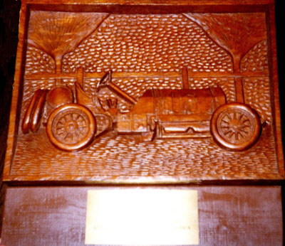 Mr. Furniss loved wood carving. Using a single piece of cherry he fashioned a plaque carving of the Locomobile roadster that he had restored. After his death it was donated to the AACA Library.
